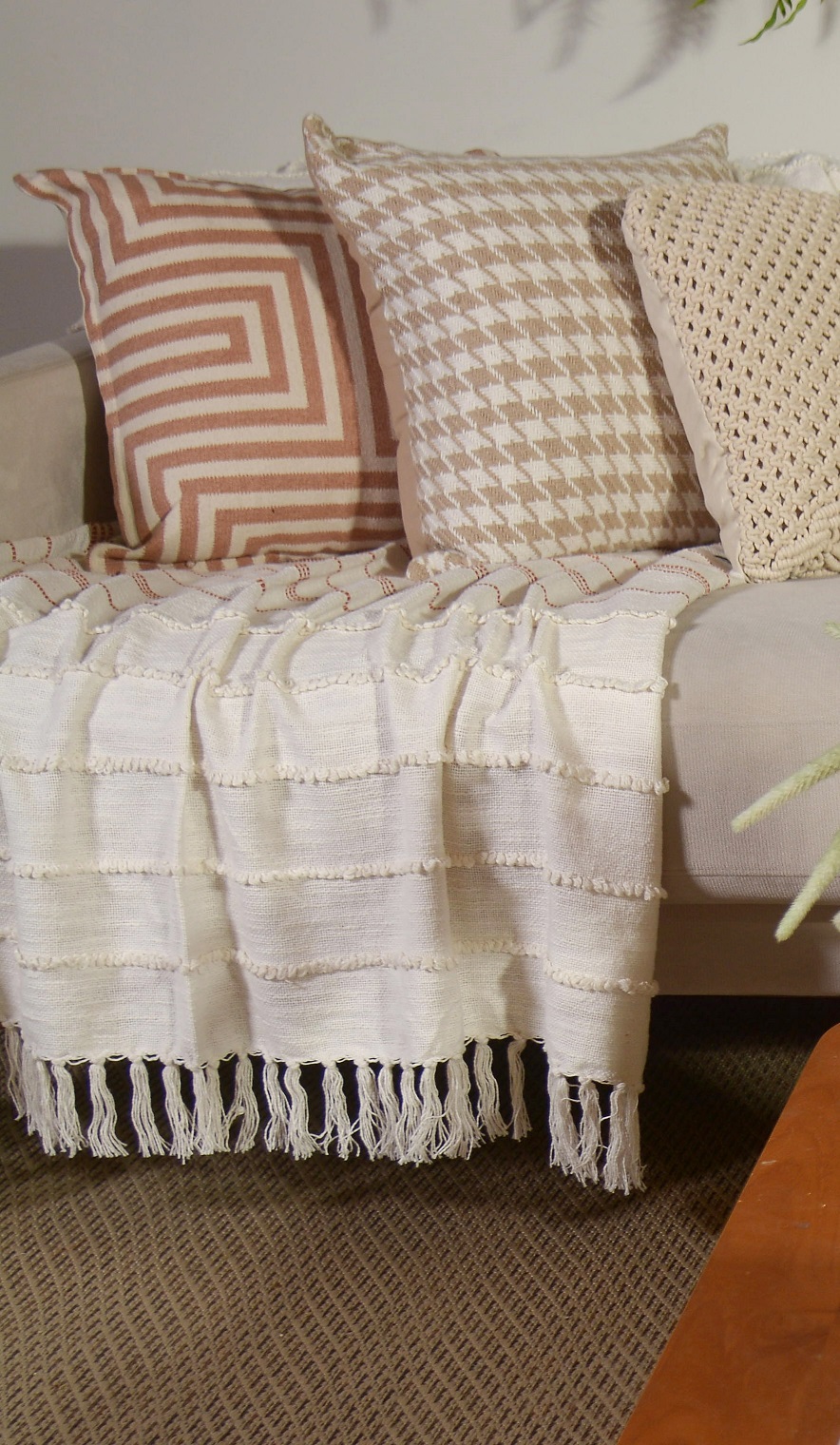 Desde kits para banheiro a almofadas, cada item da coleção foi pensado para compor cenários onde o equilíbrio cromático se traduz em um espaço que convida ao relaxamento.
