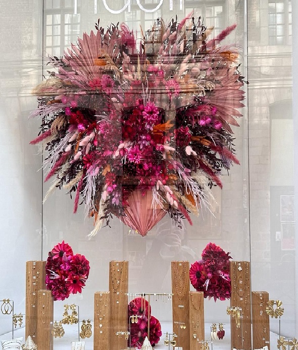 Vitrines: Destaque suas vitrines com composições florais que transmitam aconchego e sofisticação, despertando o desejo de compra.