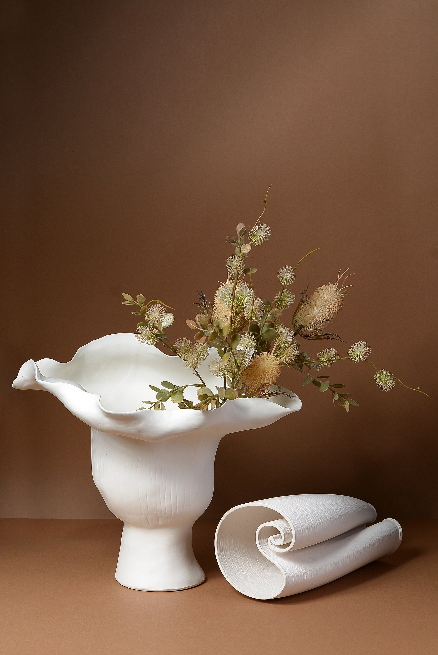 Como formas fluidas e texturas táteis desempenham um papel essencial na previsão SenseScapes para a Primavera/Verão 2024, investir em decorações com superfícies com toques hipertexturais é fundamental. A cerâmica, em particular, tem se destacado como um material comercialmente bem-sucedido. Esculturas diversas com apresentações e inspirações na água e na natureza orgânica são destaques em nossa coleção.