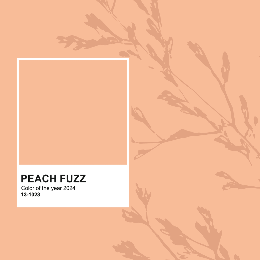 Para 2024, a Pantone nos presenteou com o Peach Fuzz, uma cor de pêssego empática e aveludada, com uma tonalidade calorosa que evoca sentimentos de otimismo, suavidade e um retorno às raízes, além de exprimir o desejo de se nutrir e nutrir os outros.