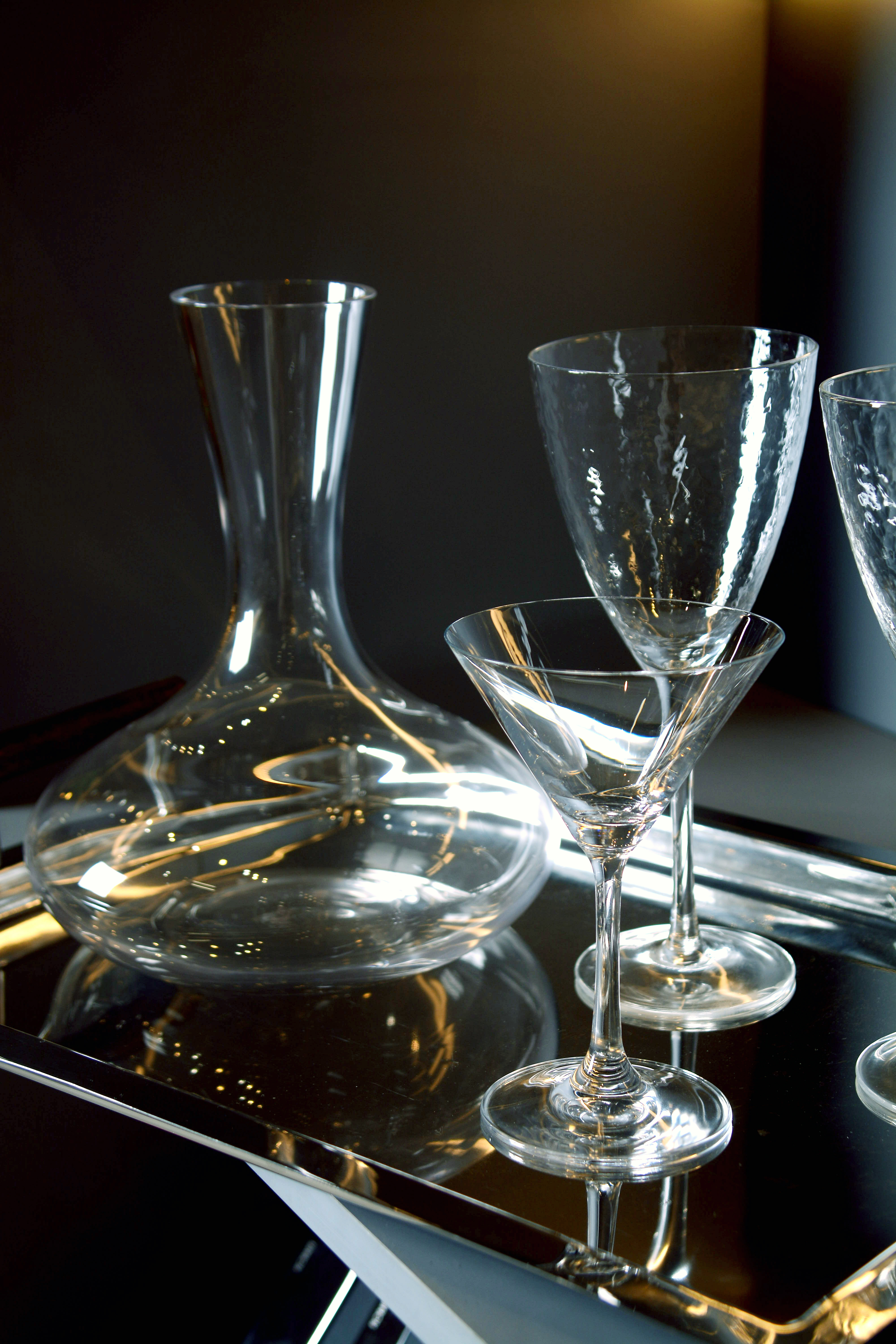 Outro exemplo no estilo Quiet Luxury é a bandeja prateada com copos de cristal. Colocada em uma mesa de canto, essa peça se torna um ponto focal elegante e funcional, transmitindo uma sensação de bem-estar e atenção aos detalhes que é característica desse estilo.