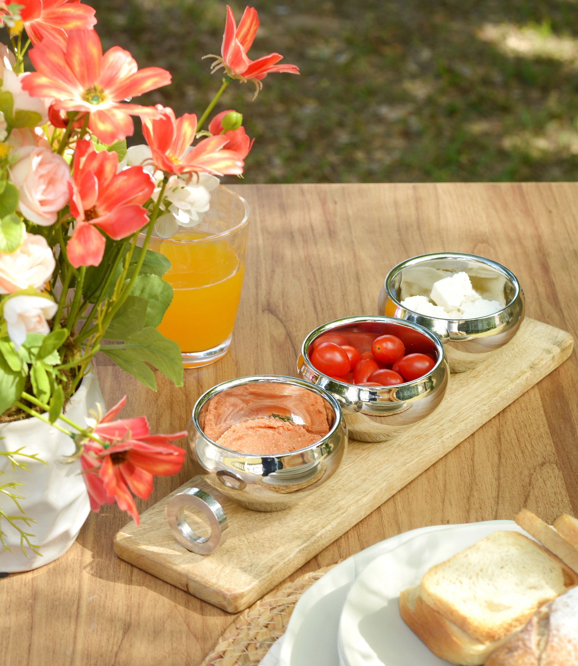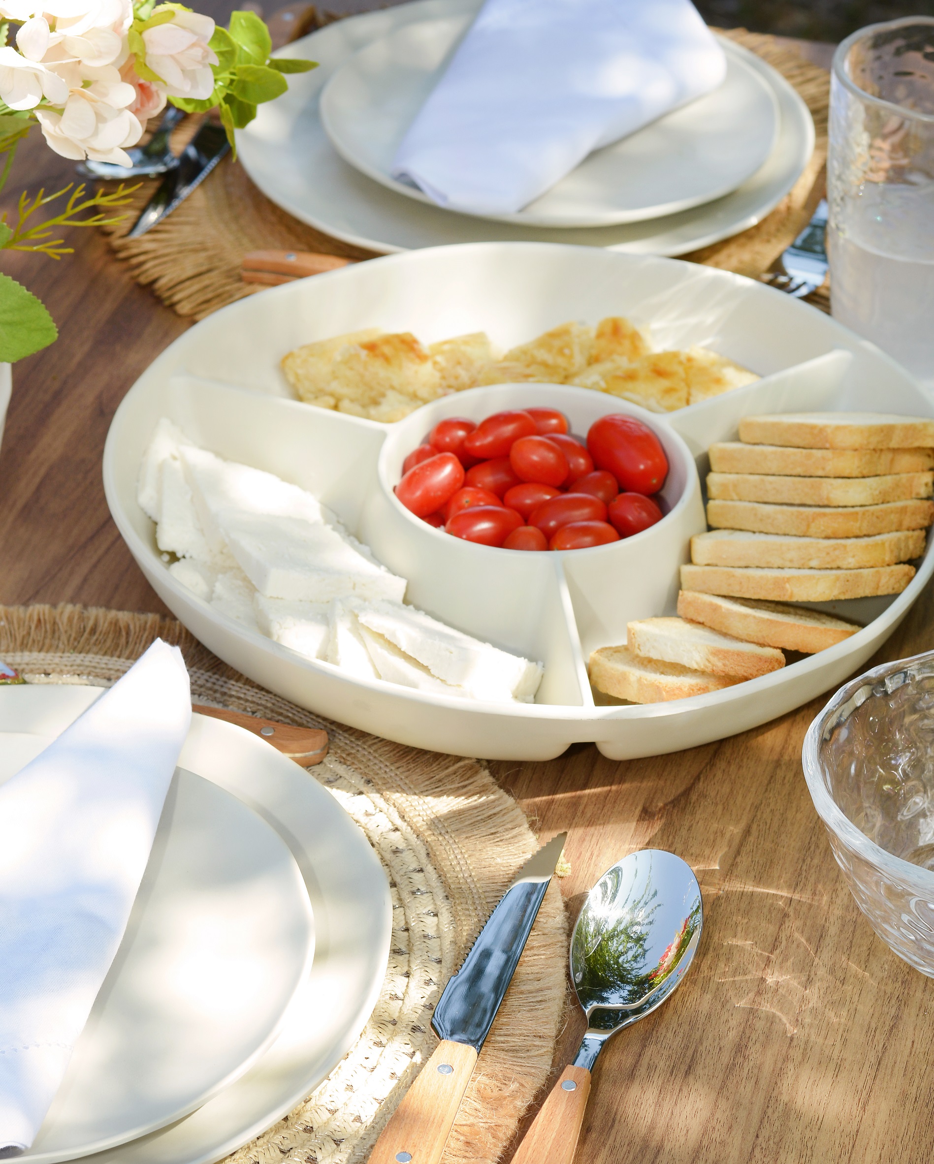 Aproveitar o ar livre é um dos grandes prazeres da primavera. Para isso, conte com produtos que garantem praticidade e sofisticação, como pratos de melamina, faqueiros de aço inox e taças de acrílico. Esses elementos são essenciais para criar ambientes descontraídos, sem perder o estilo. A petisqueira redonda de melamina e o conjunto de petisqueira em aço inox com madeira são opções que combinam funcionalidade e charme à mesa.